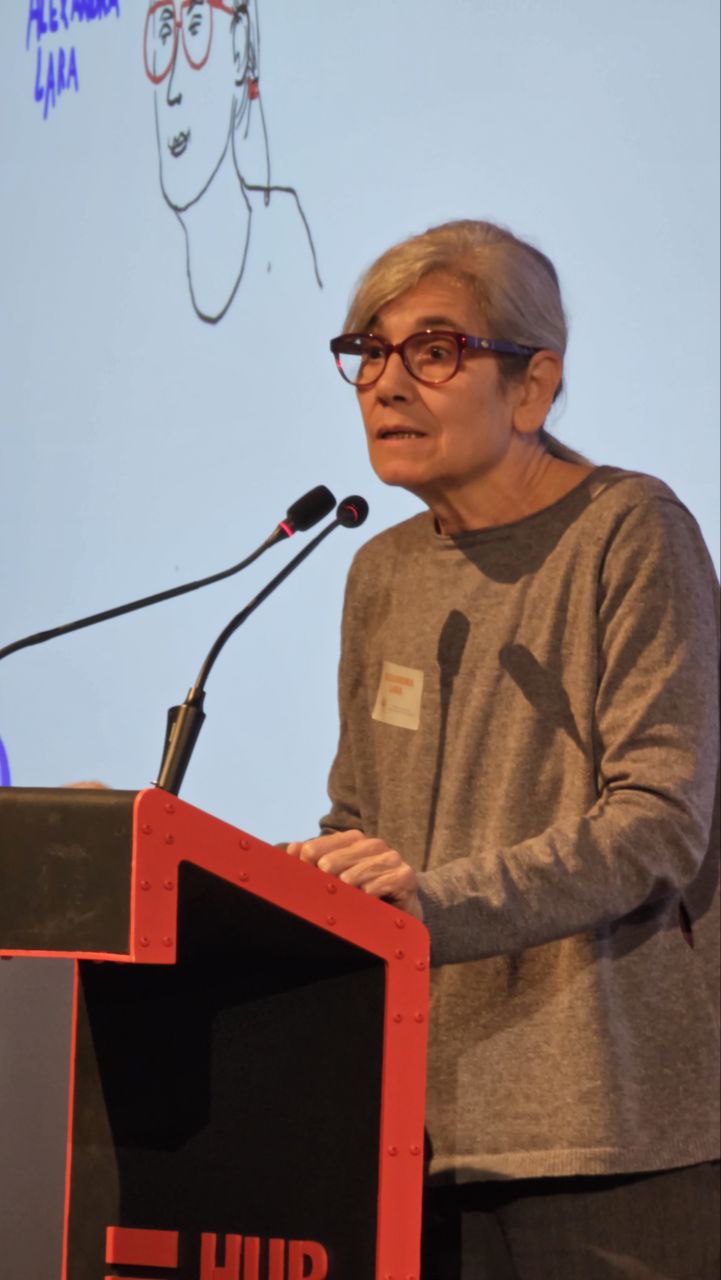 Abans de la projecció dels vídeos de 40 veus, 40 dies, Alexandra Lara, treballadora històrica de la Fundació, va fer un parlament que va captivar la sala. Va parlar dels inicis, de la precarietat, de les primeres famílies i dels primers joves: