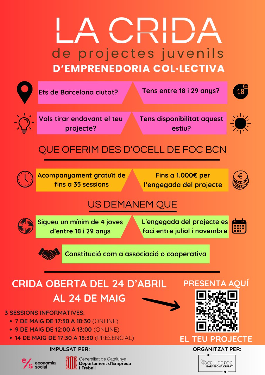 Es tracta d’una convocatòria conjunta dels nuclis Ocell de Foc de Barcelona per tal de donar suport a iniciatives juvenils en el procés per a convertir-se en cooperativa o associació.
