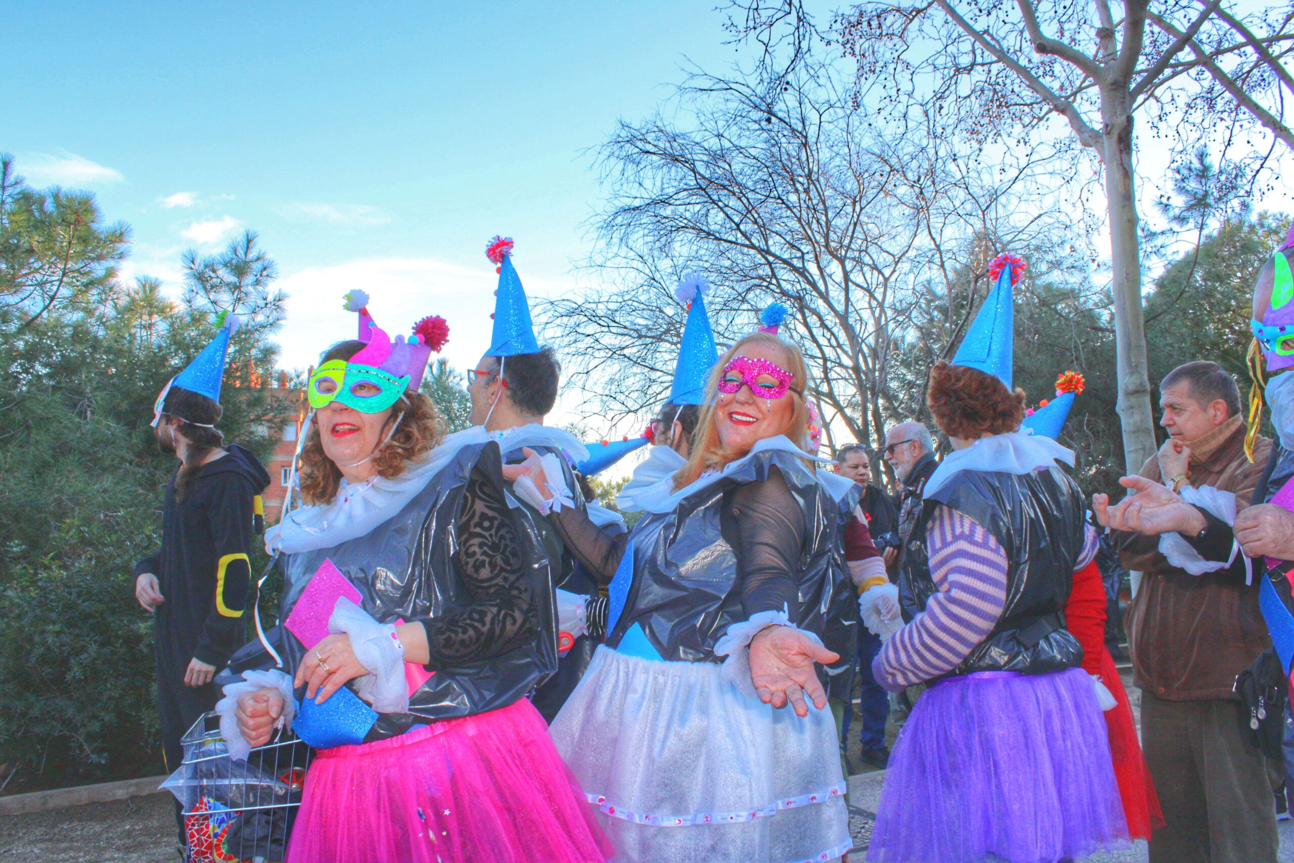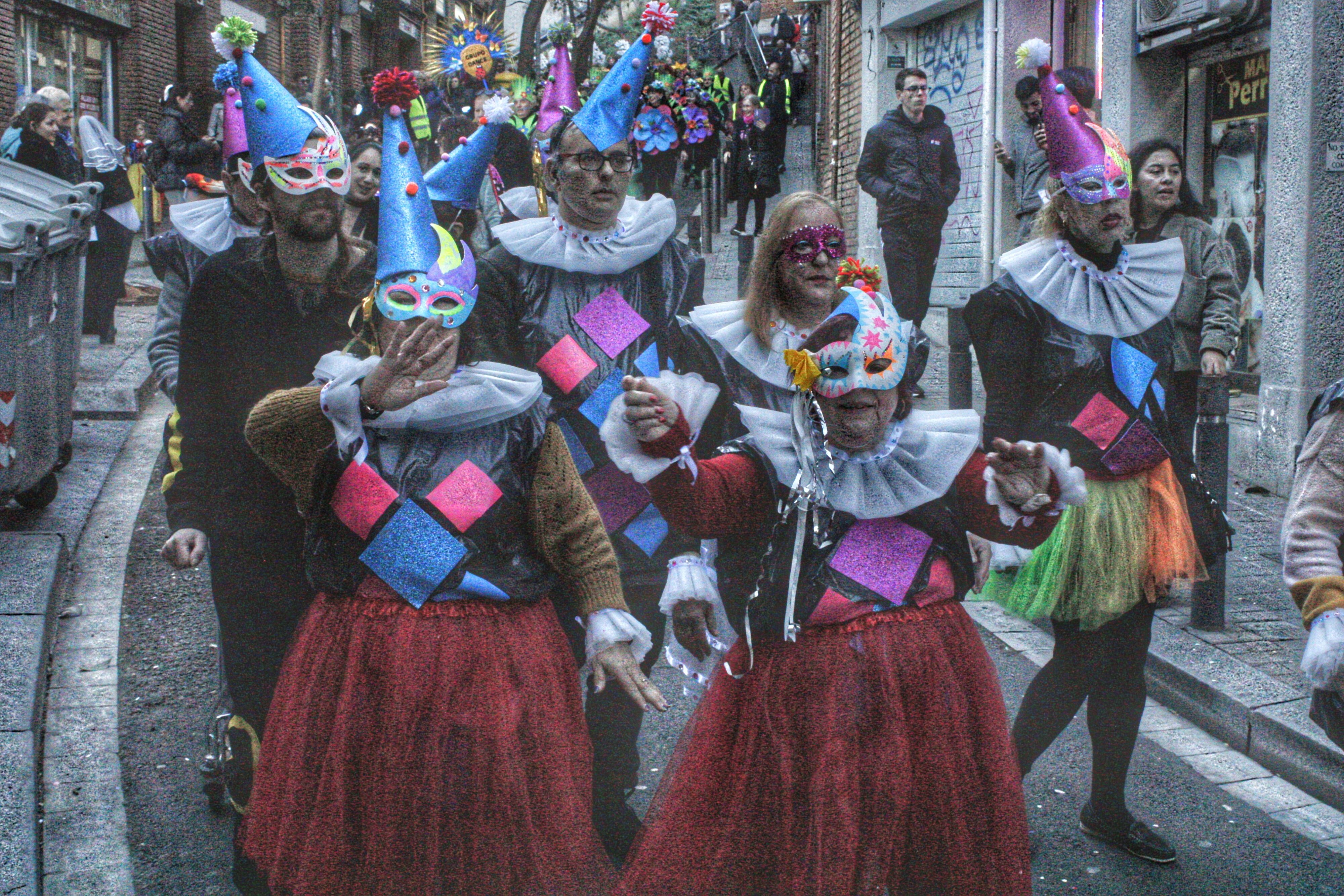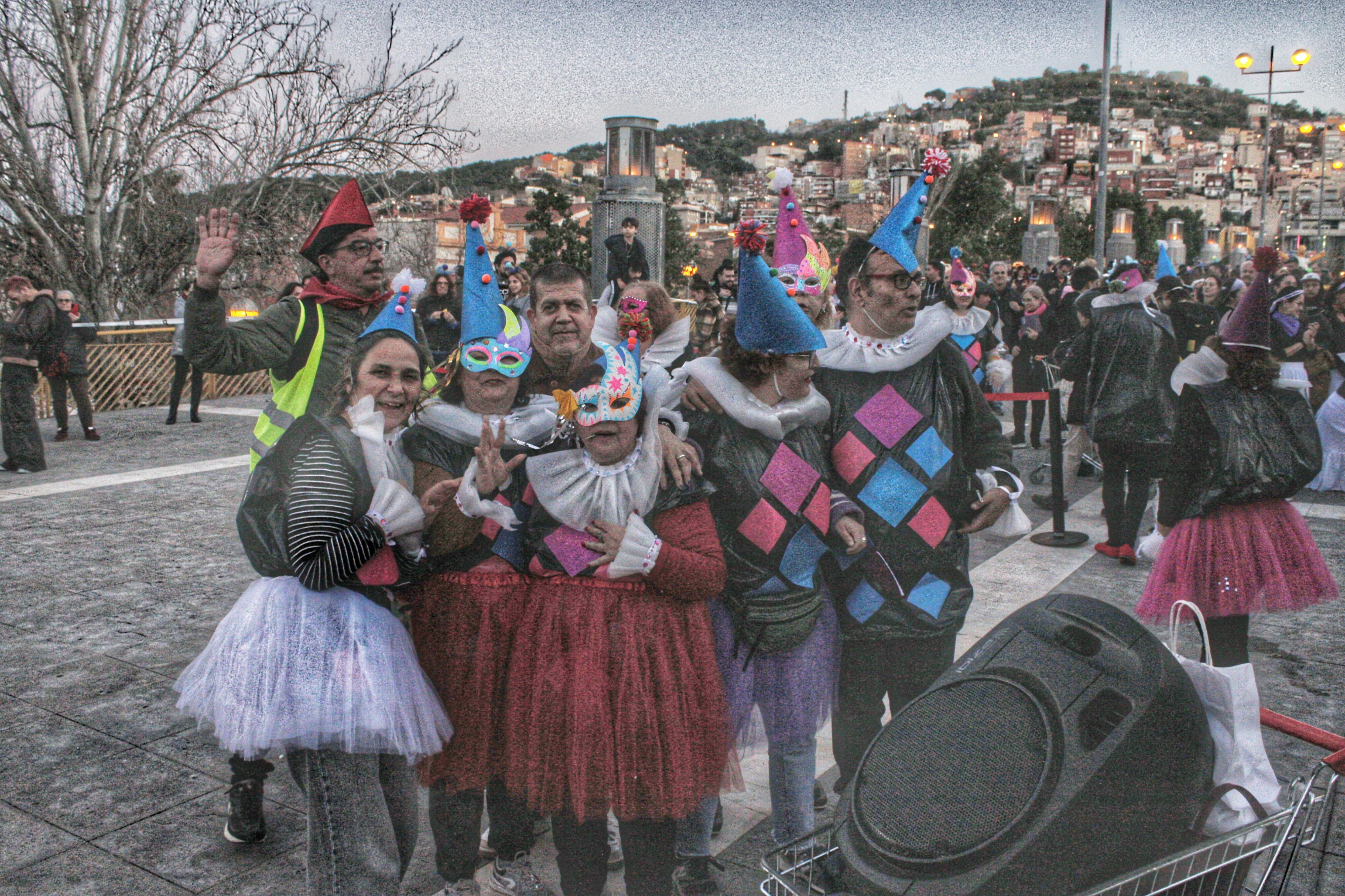Dissabte 14 “Els Arlequins”, una comparsa oberta a tothom, van desfilar a la Rua del Carnestoltes del Carmel que va omplir el barri una vegada més de música, de colors i d’imaginació. Per fi es van veure en moviment les disfresses preparades setmana rera setmana per integrants del Club Social Pol Positiu i el Servei de Rehabilitació Comunitària d’Adults. A més dels barrets punxeguts i les màscares pintades a mà les disfresses constaven de quatre peces més: un vestit arlequinat, una faldilla prisada i punys i gorgera blancs.
