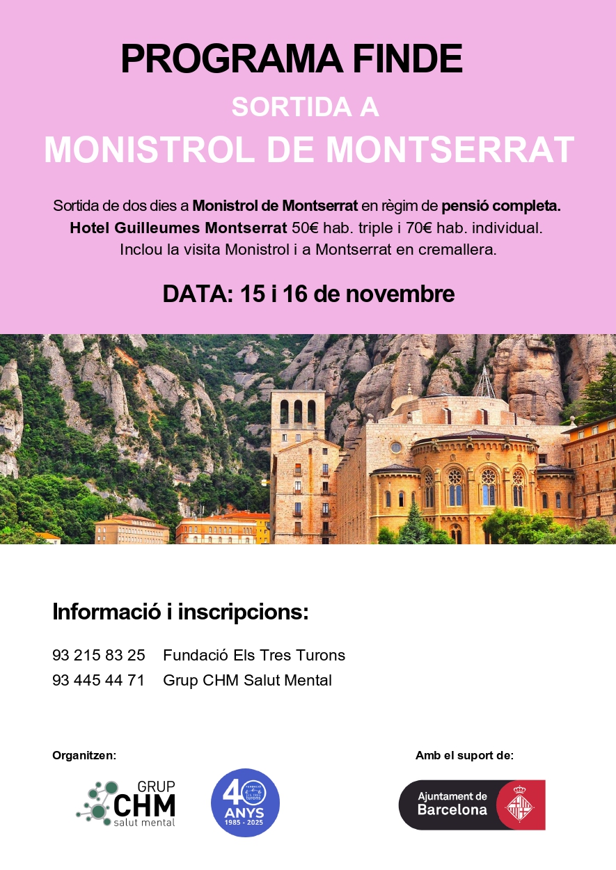 Els dies 15 i 16 de novembre, un grup de participants del Programa FINDE va gaudir d’una escapada de dos dies a Monistrol de Montserrat, una activitat pensada per a fomentar l’autonomia personal, la convivència i el benestar emocional a través de l’oci inclusiu.